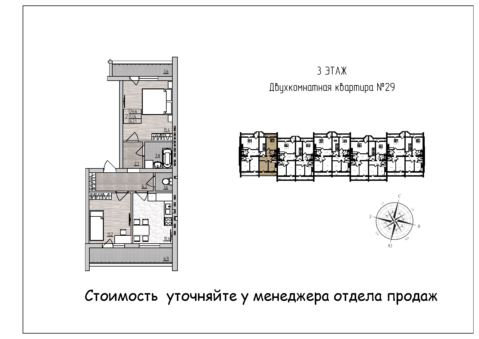 На этаже всего 2 квартиры, что обеспечивает максимальную приватность и удобство для наших жильцов