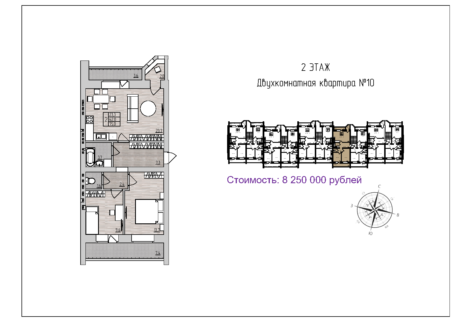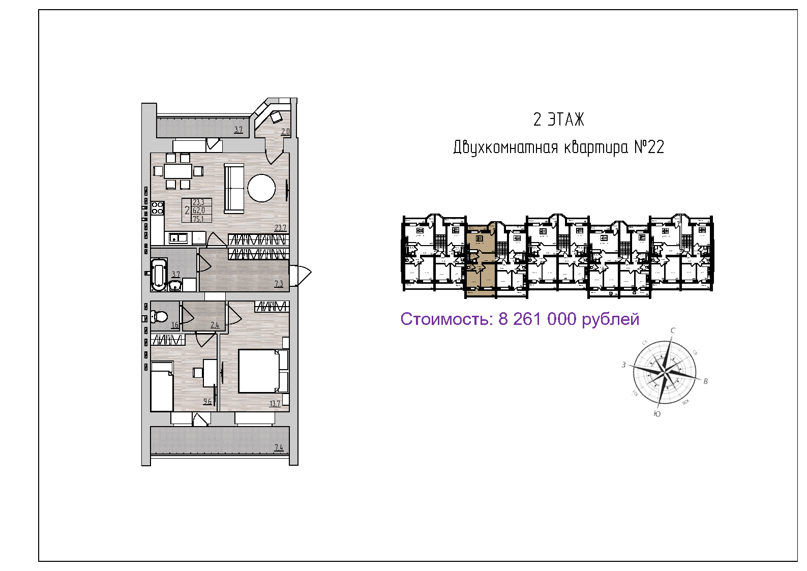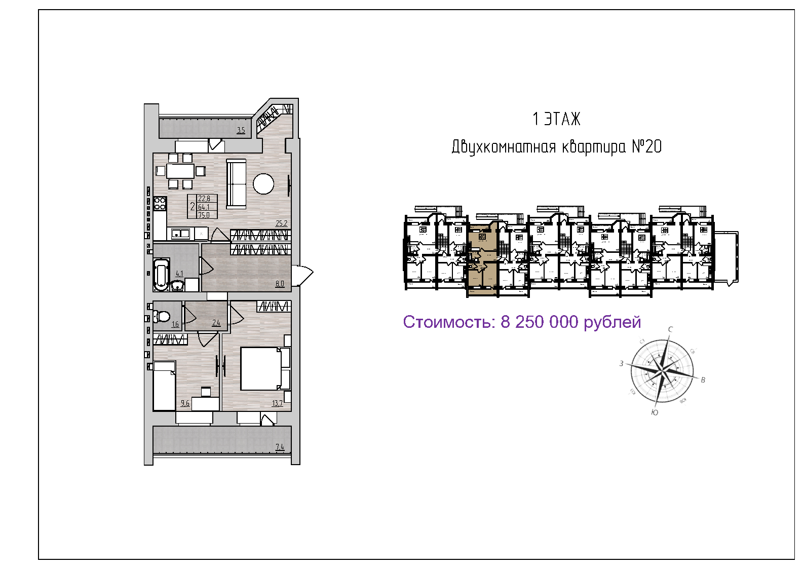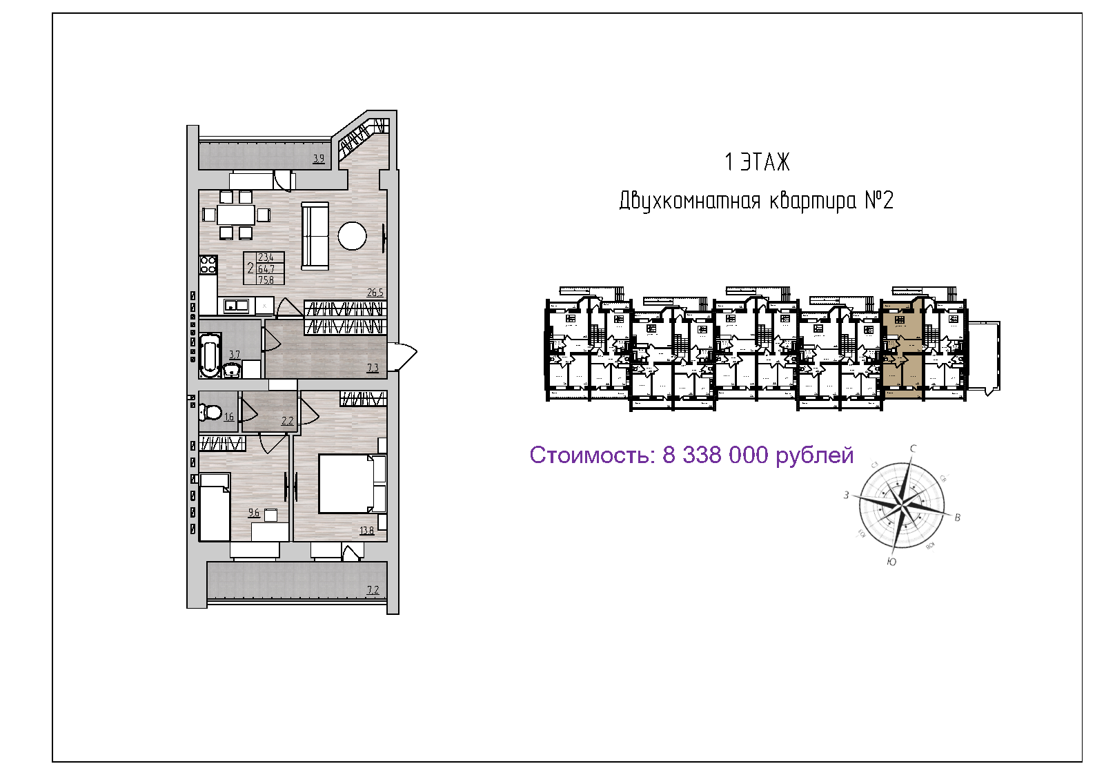 На этаже всего 2 квартиры, что обеспечивает максимальную приватность и удобство для наших жильцов