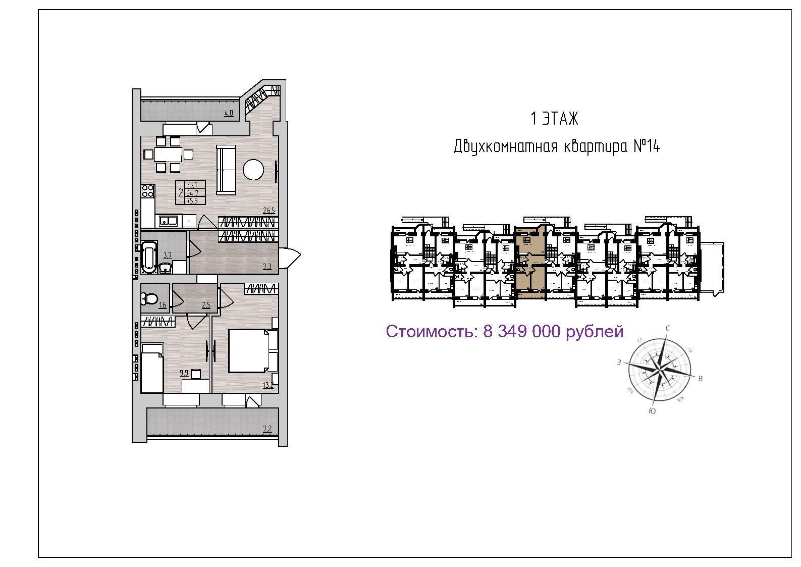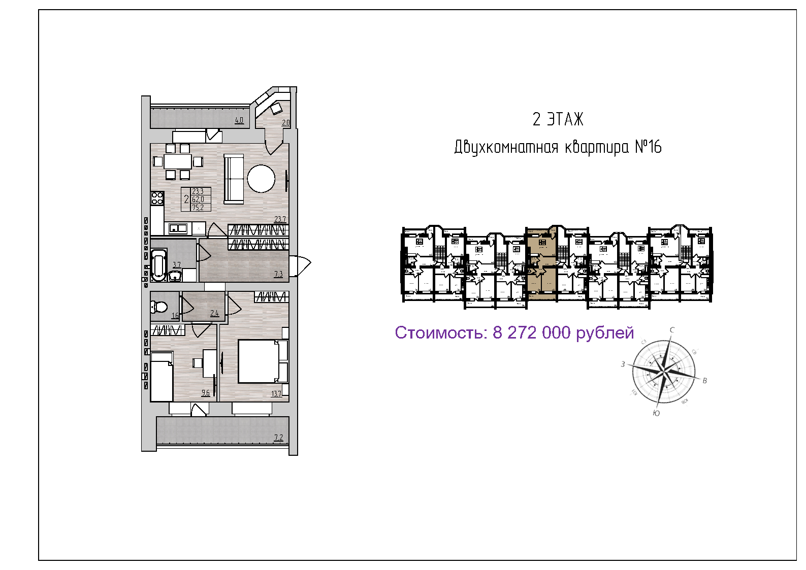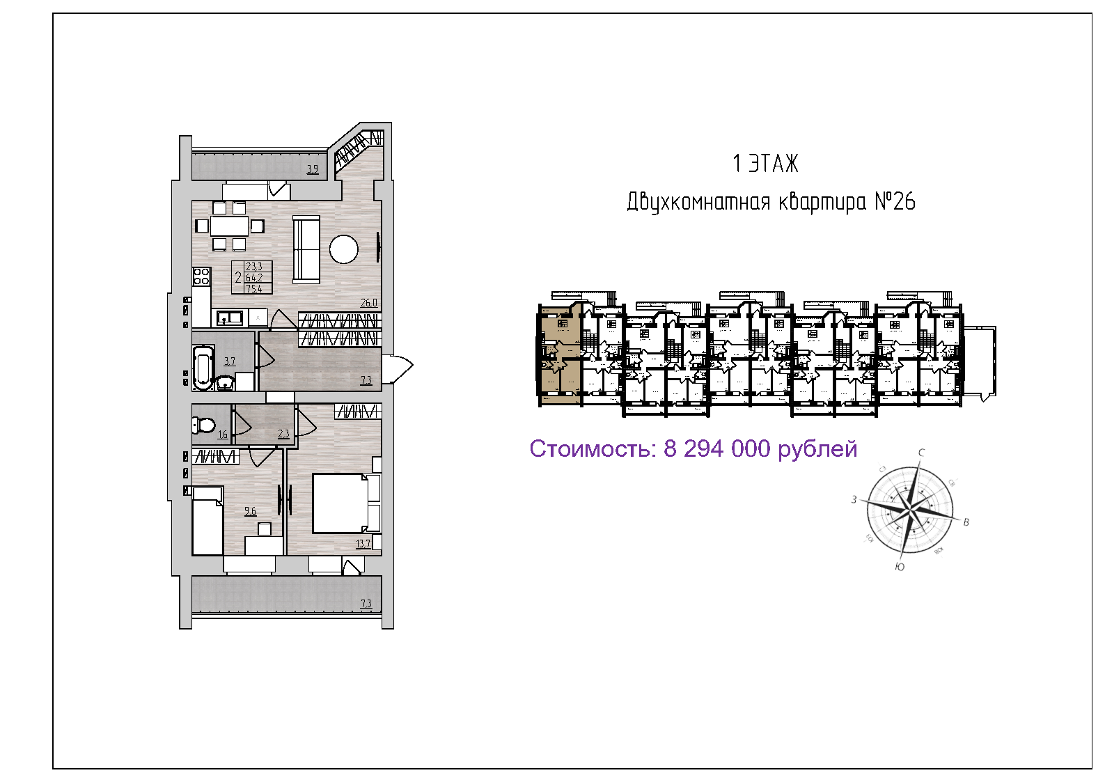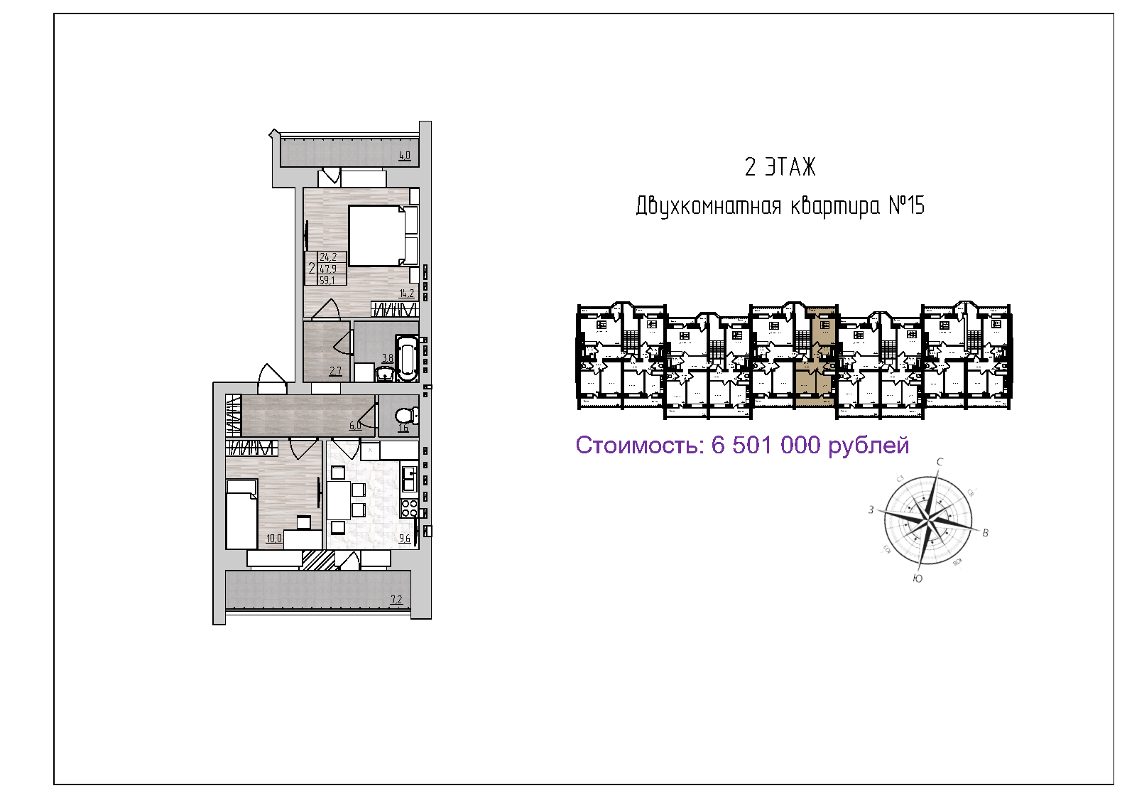 На этаже всего 2 квартиры, что обеспечивает максимальную приватность и удобство для наших жильцов