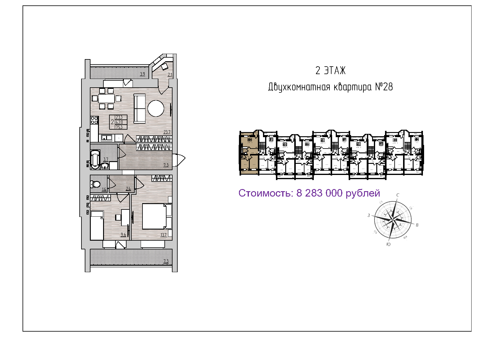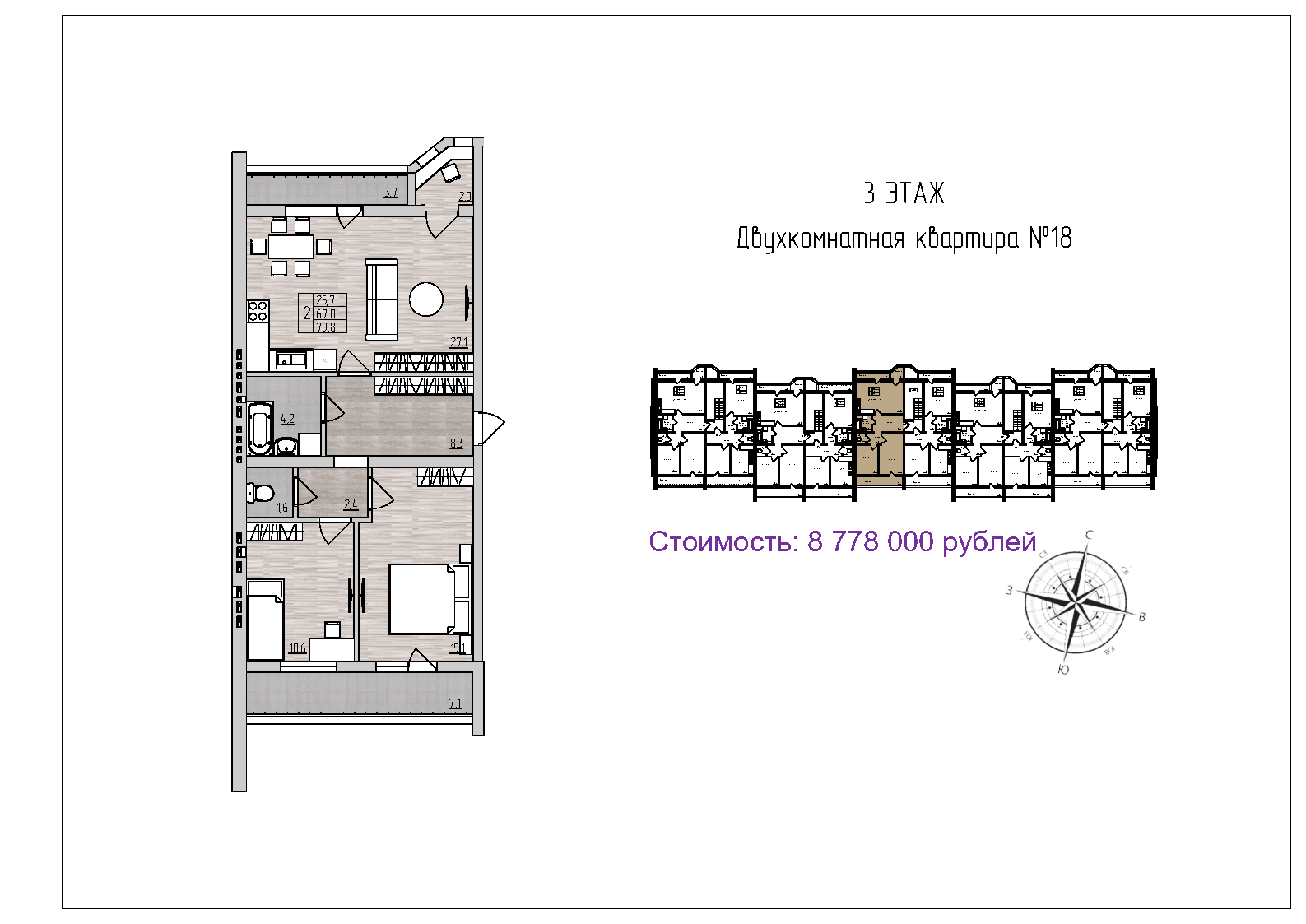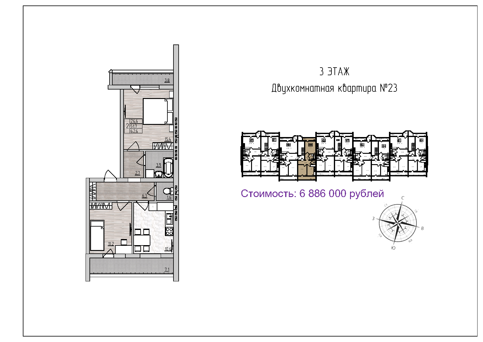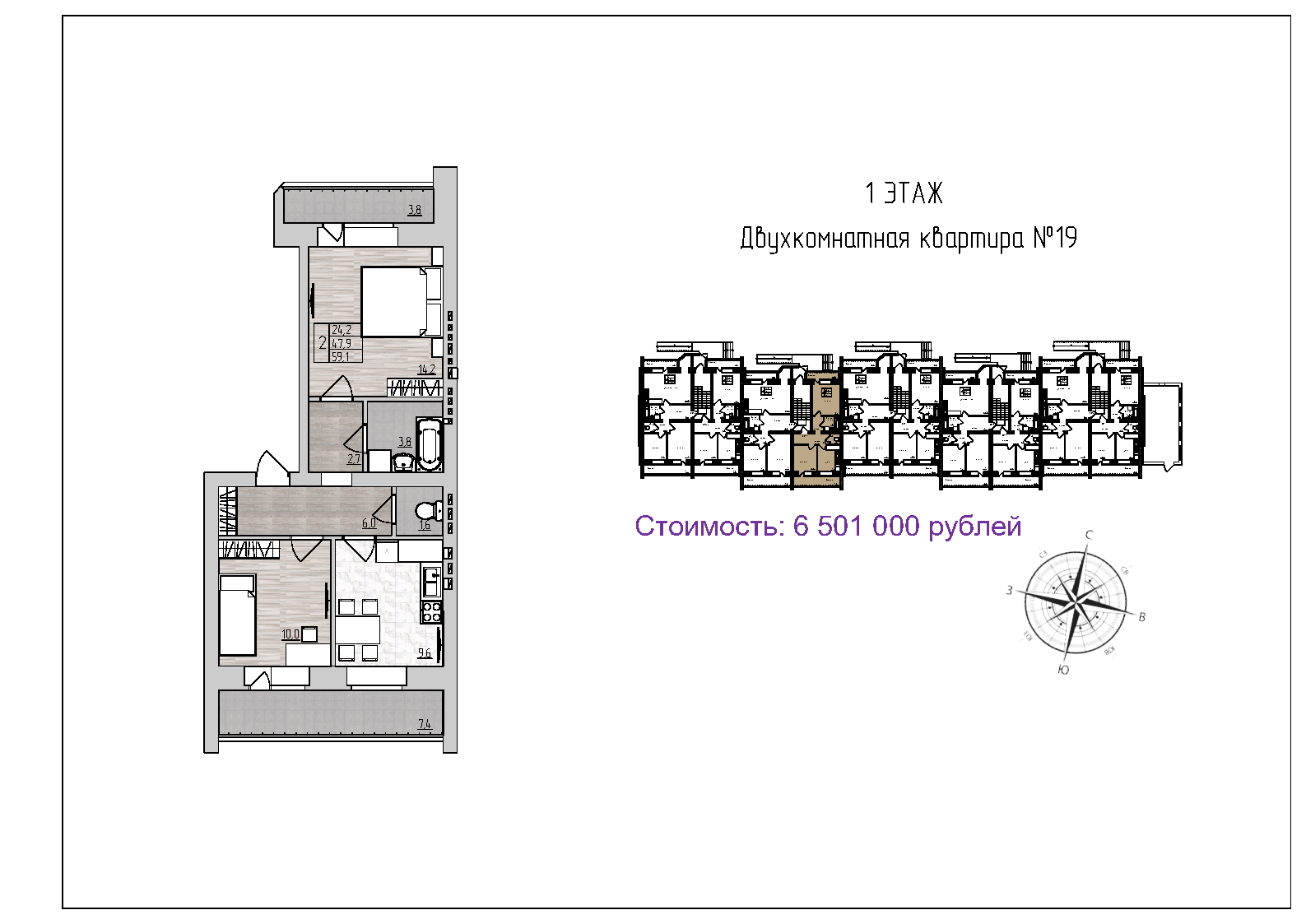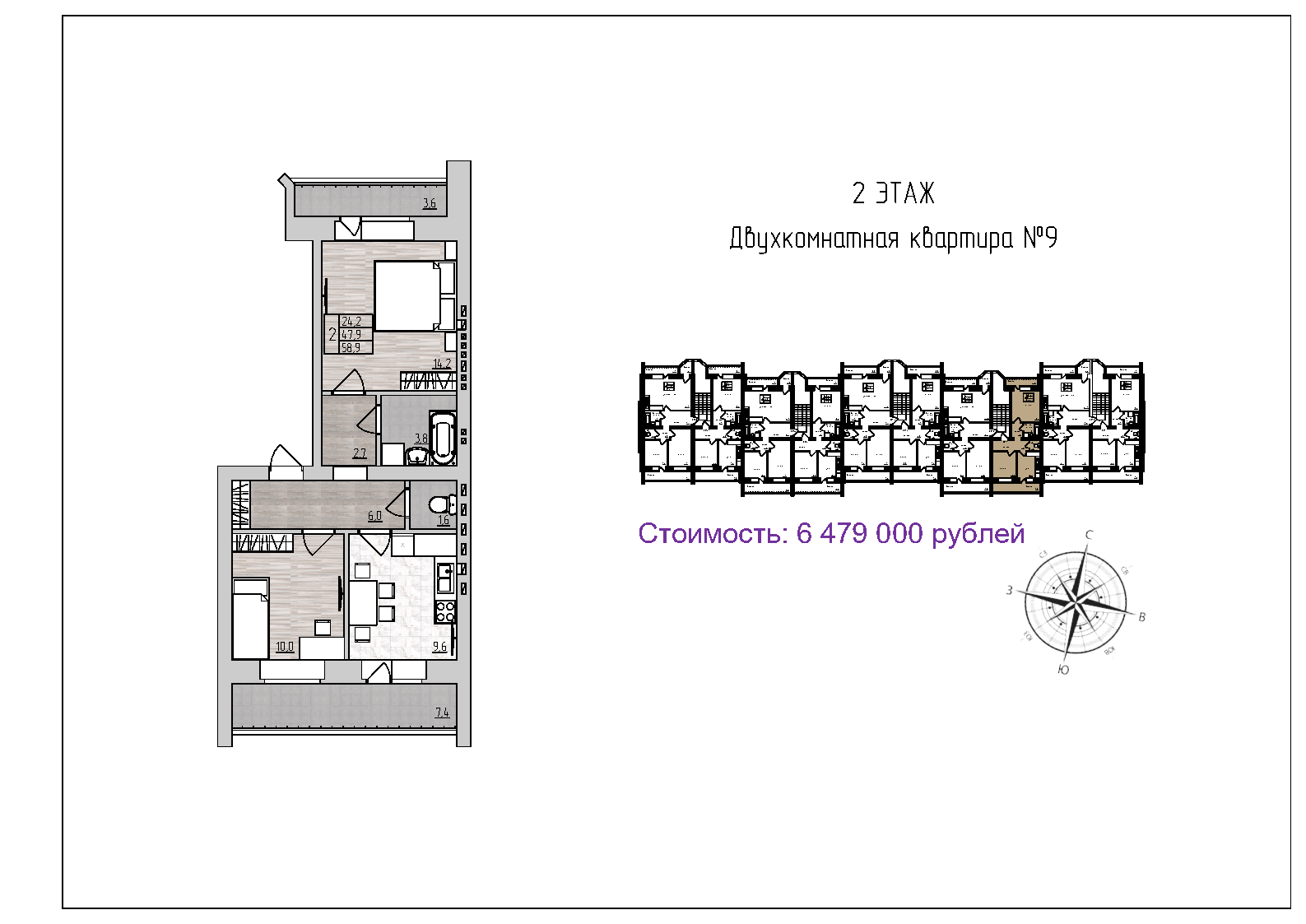 На этаже всего 2 квартиры, что обеспечивает максимальную приватность и удобство для наших жильцов