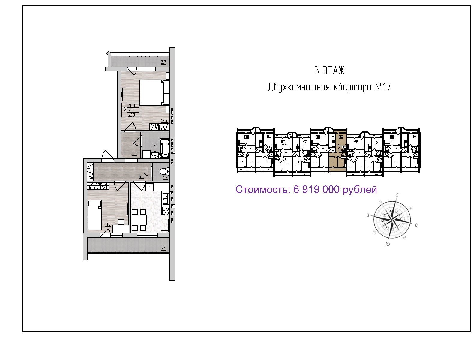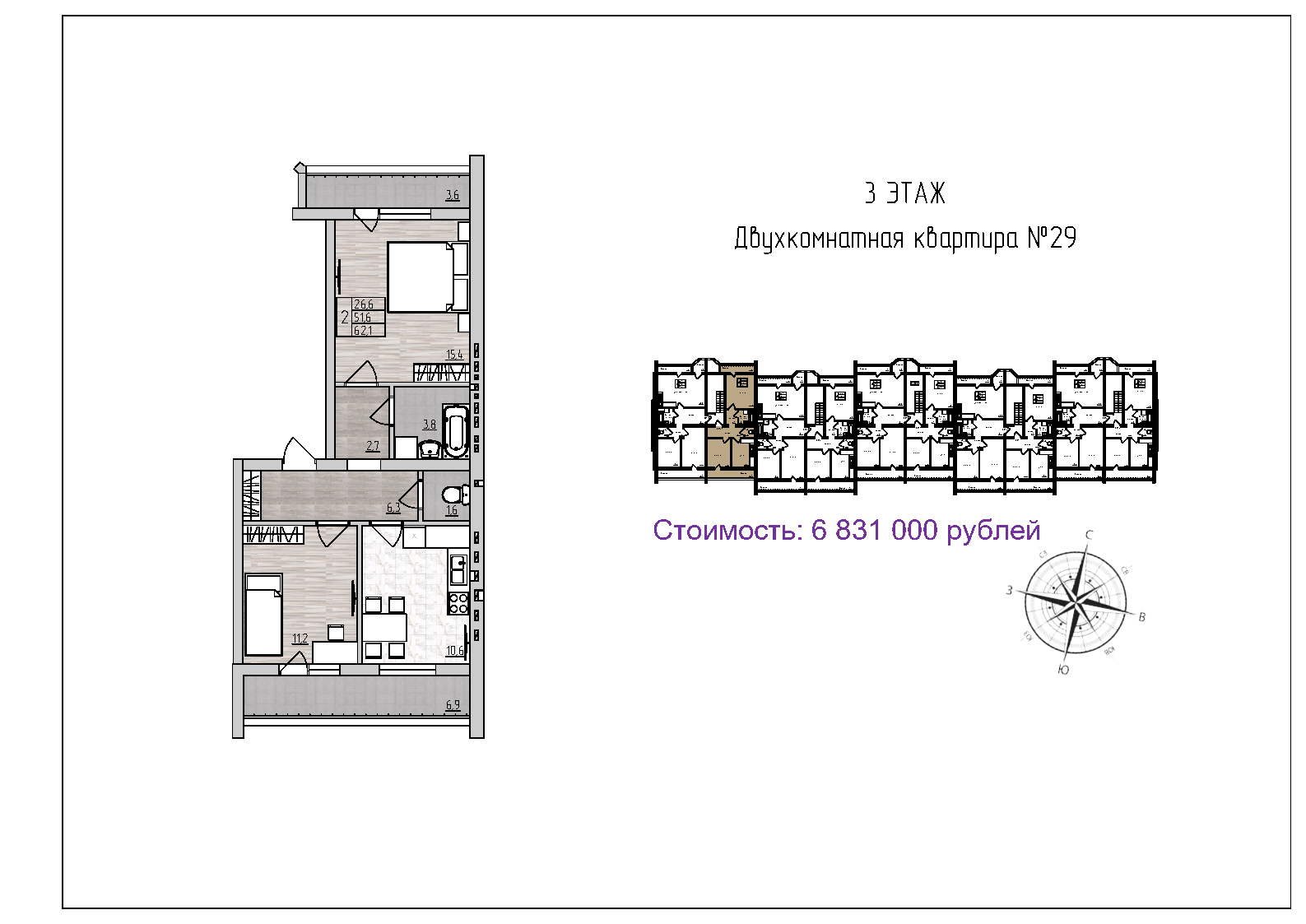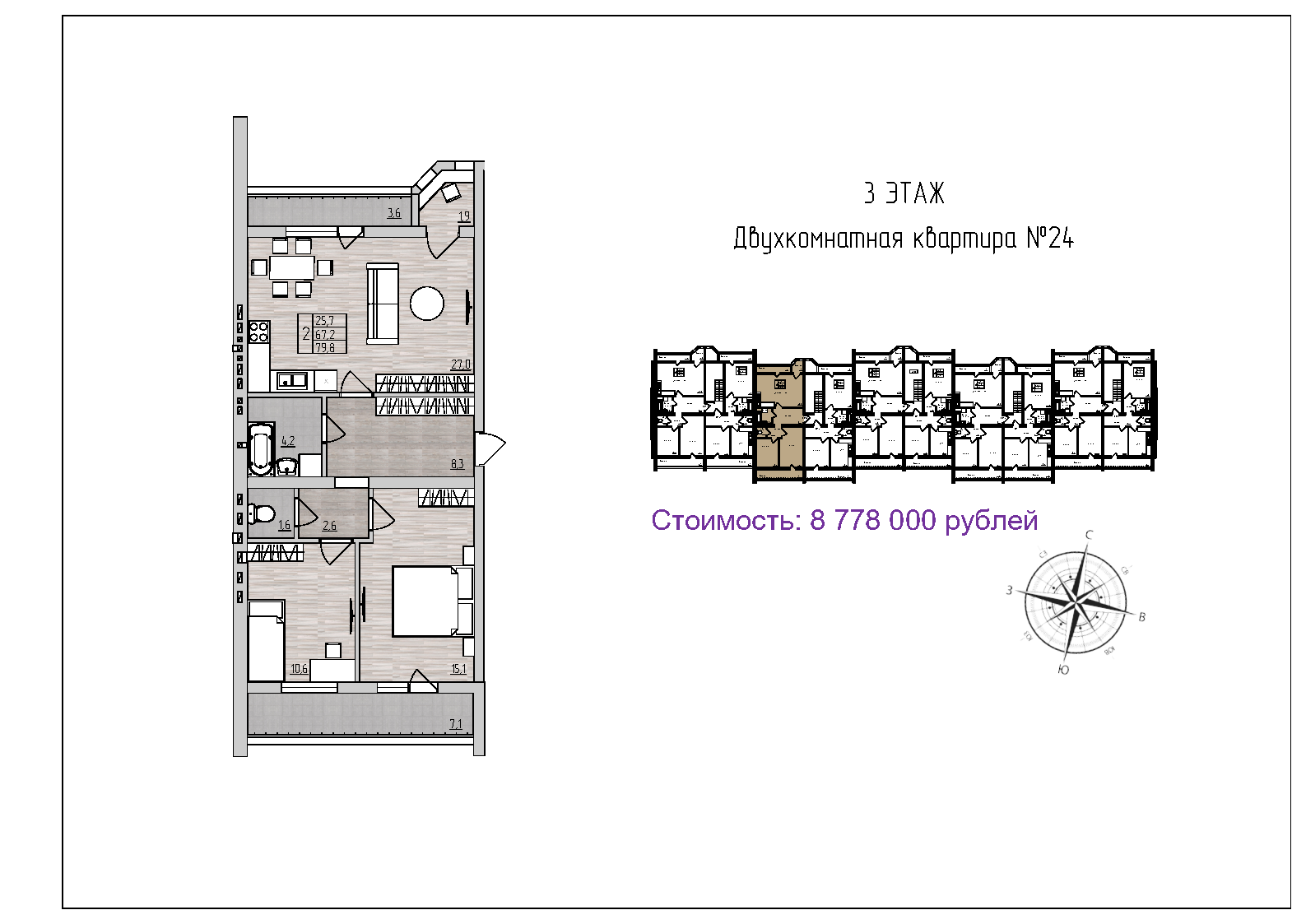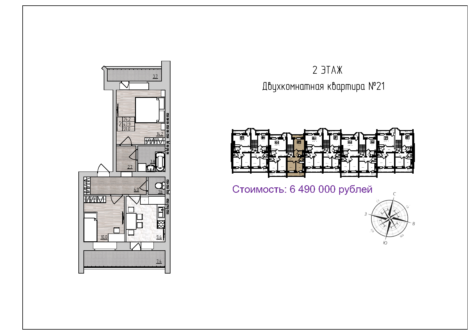 На этаже всего 2 квартиры, что обеспечивает максимальную приватность и удобство для наших жильцов