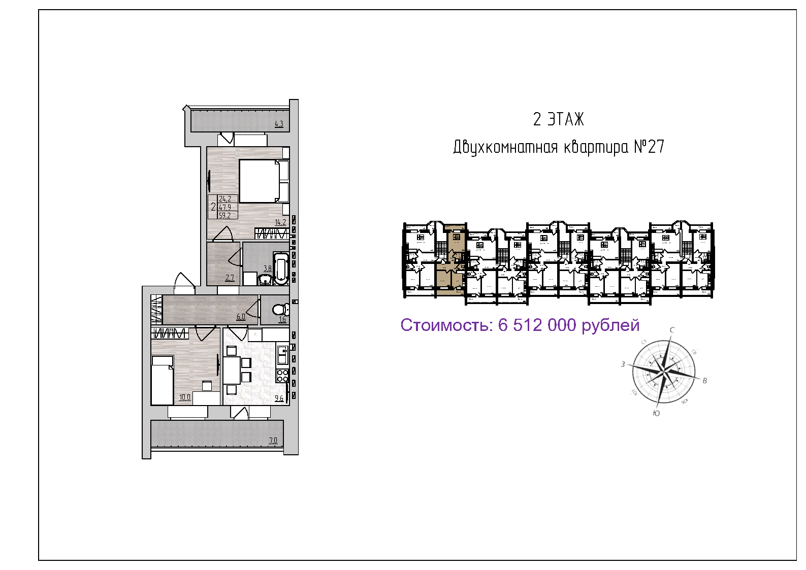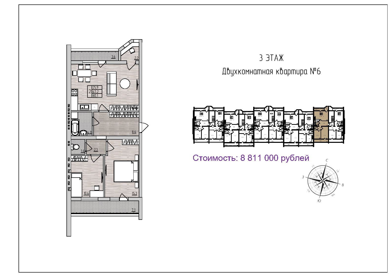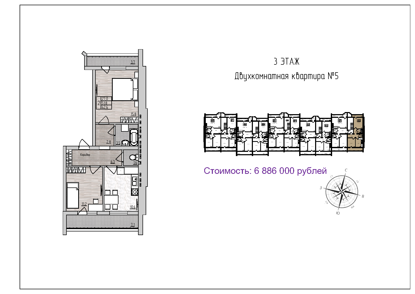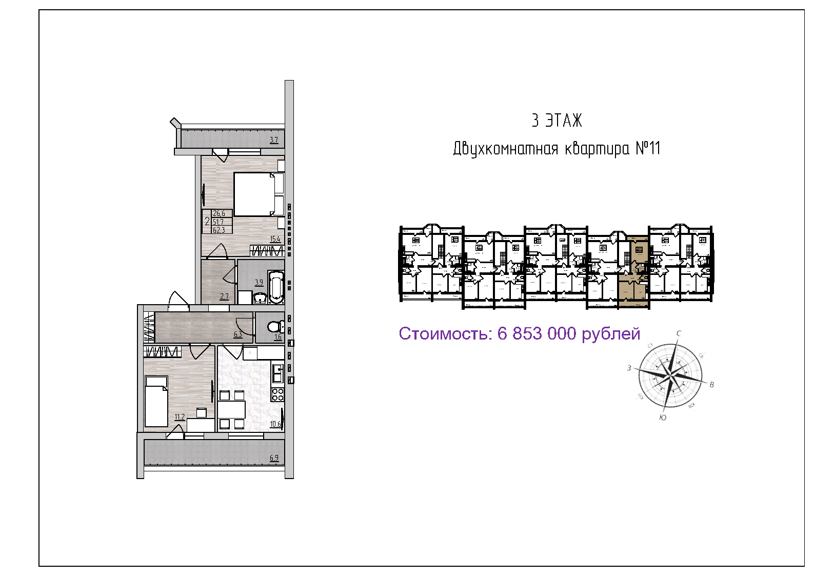 На этаже всего 2 квартиры, что обеспечивает максимальную приватность и удобство для наших жильцов